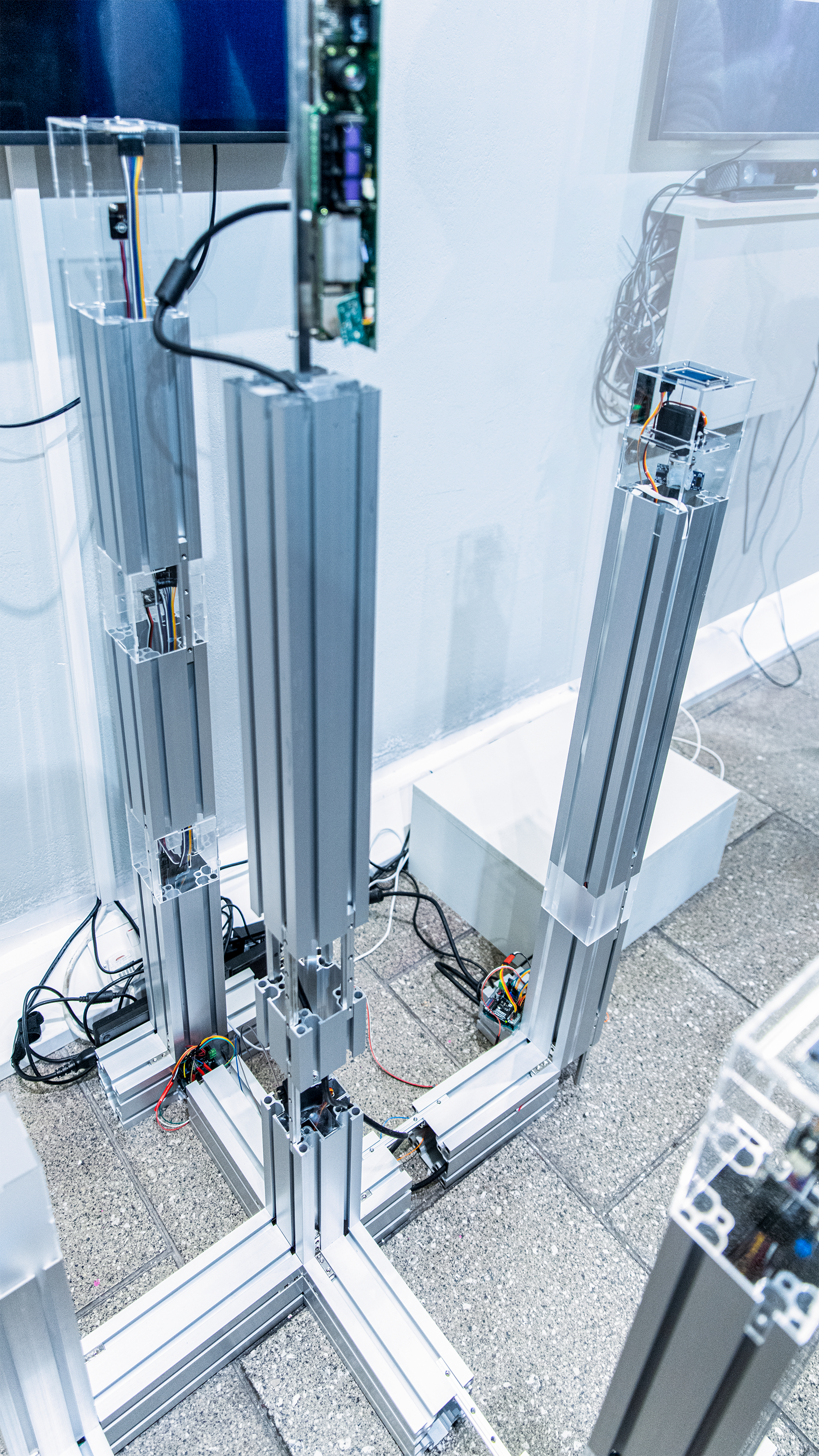 「SANCITY(新數據驅動城市)」項目是為響應快速發展的數據驅動智能城市概念而創建的。在這些城市環境中,數據不僅僅是技術的副產品,而是重塑權力動態和治理結構的關鍵力量或工具。“數據方尖碑”是一個創新的裝置,體現了在城市環境中如何收集、分析和利用數據。它由五組裝滿傳感器的立柱組成,反映了城市數據採集的多樣性,從單個傳感器的分布到相互連接的網絡,映射了 “SANCITY “以數據為中心的本質。